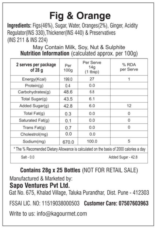 KA Gourmet Fig and Orange Conserve 28gm x 25 - Mini